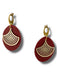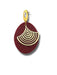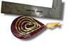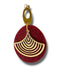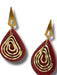 - Teardrop Design with Layered Gold Lines – A striking teardrop shape featuring concentric gold accents on a deep red polymer clay base.