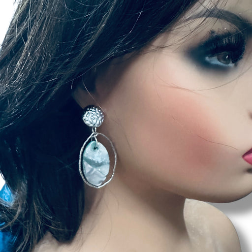 Modern Geometric Polymer Clay Earrings – Silver, Grey, Green | Handmade 2” Statement Jewelry