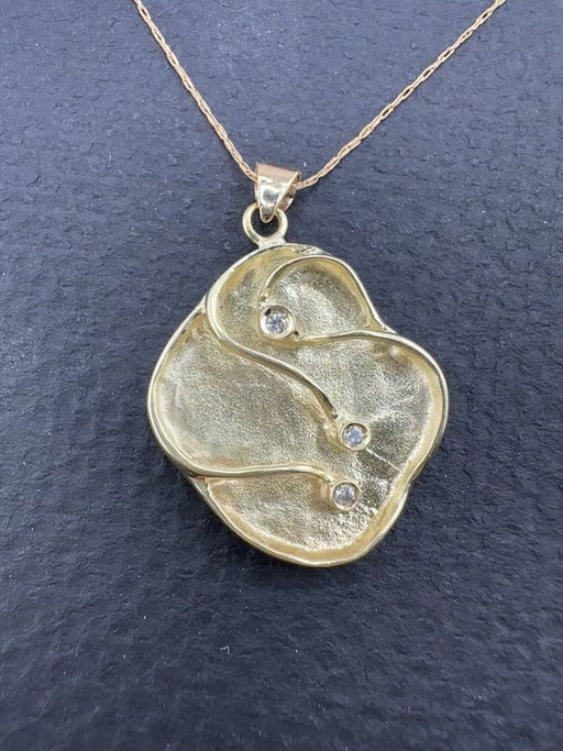 14K Gold Art Nouveau Necklace w/ Three Full Cut Diamonds – 6.74g, 18"