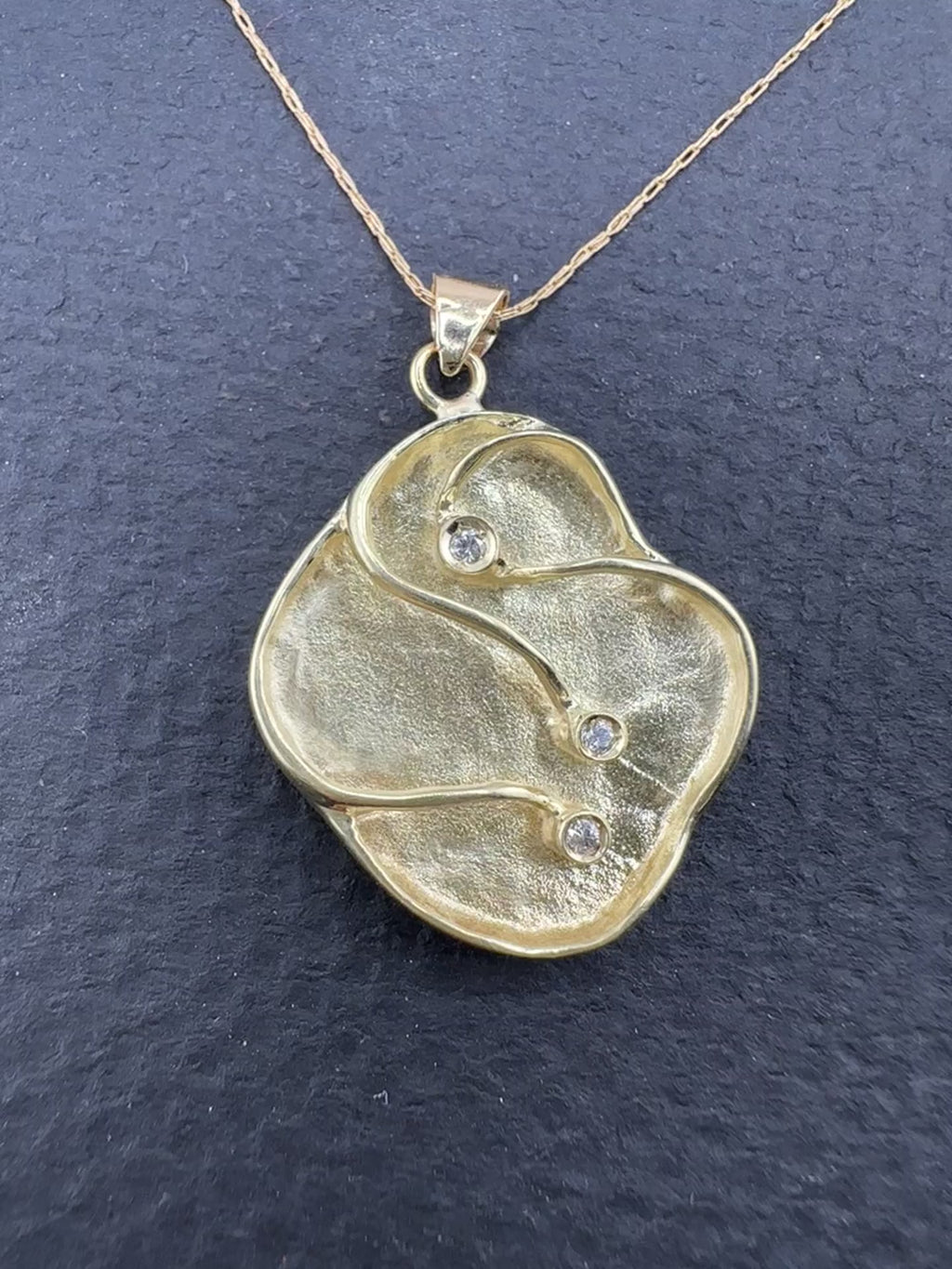This exquisite 14K Gold Art Nouveau pendant necklace features graceful lines and timeless design, highlighted by three sparkling full cut diamonds. A beautiful blend of craftsmanship and early‑20th‑century styling, this necklace makes a refined statement for both collectors and everyday elegance.